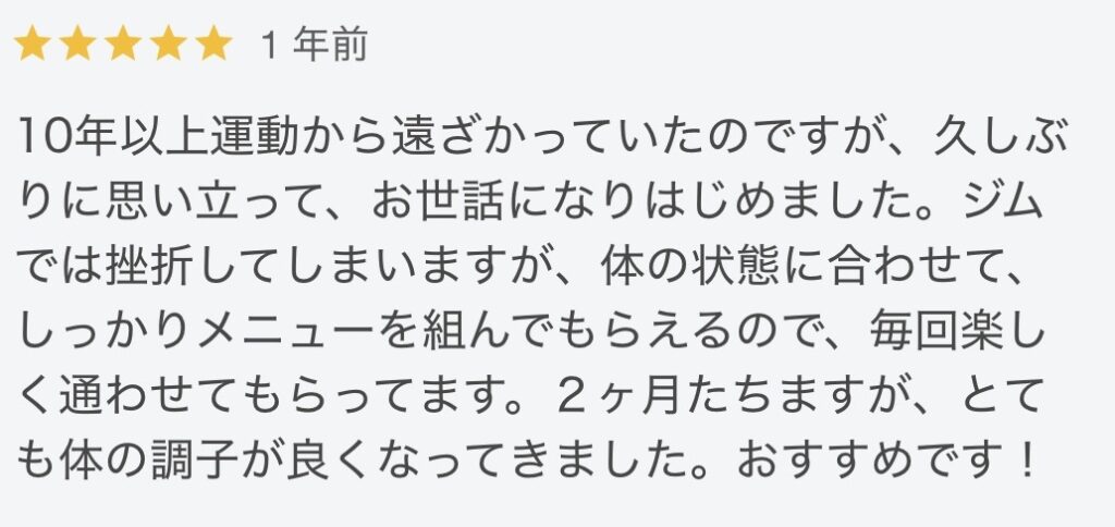 トレーナー歴8年、有資格者のインストラクターが優しくサポートします。